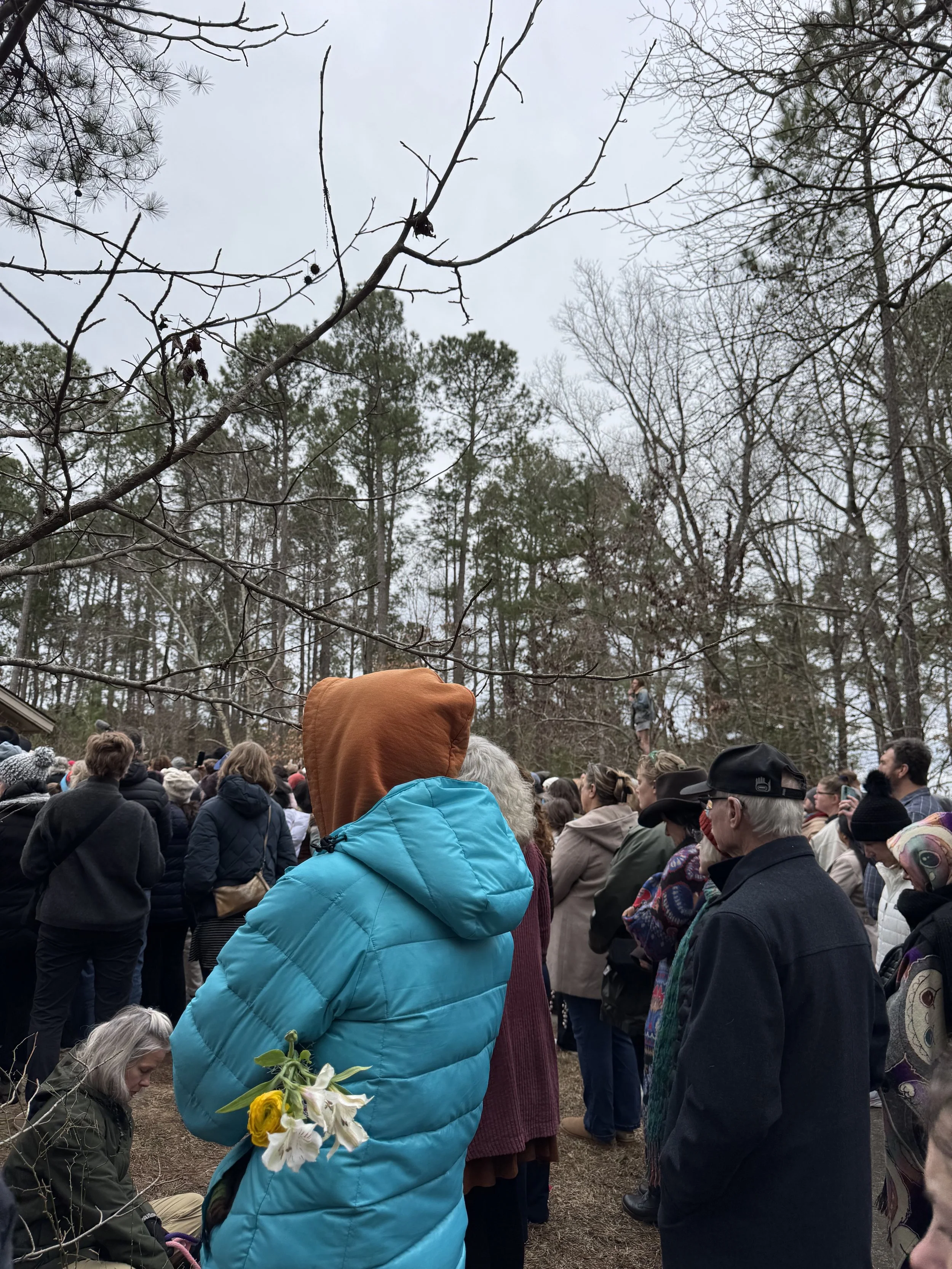 It was cold, the kind of cold that settles into your bones. And still people gathered. Cars lined the road. Folks stood shoulder to shoulder, hands tucked into pockets. One woman had climbed into a tree to get a better view.